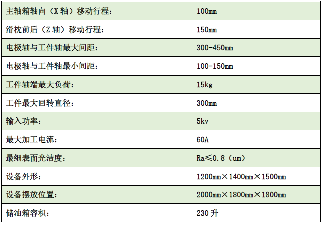 主要技术参数:
